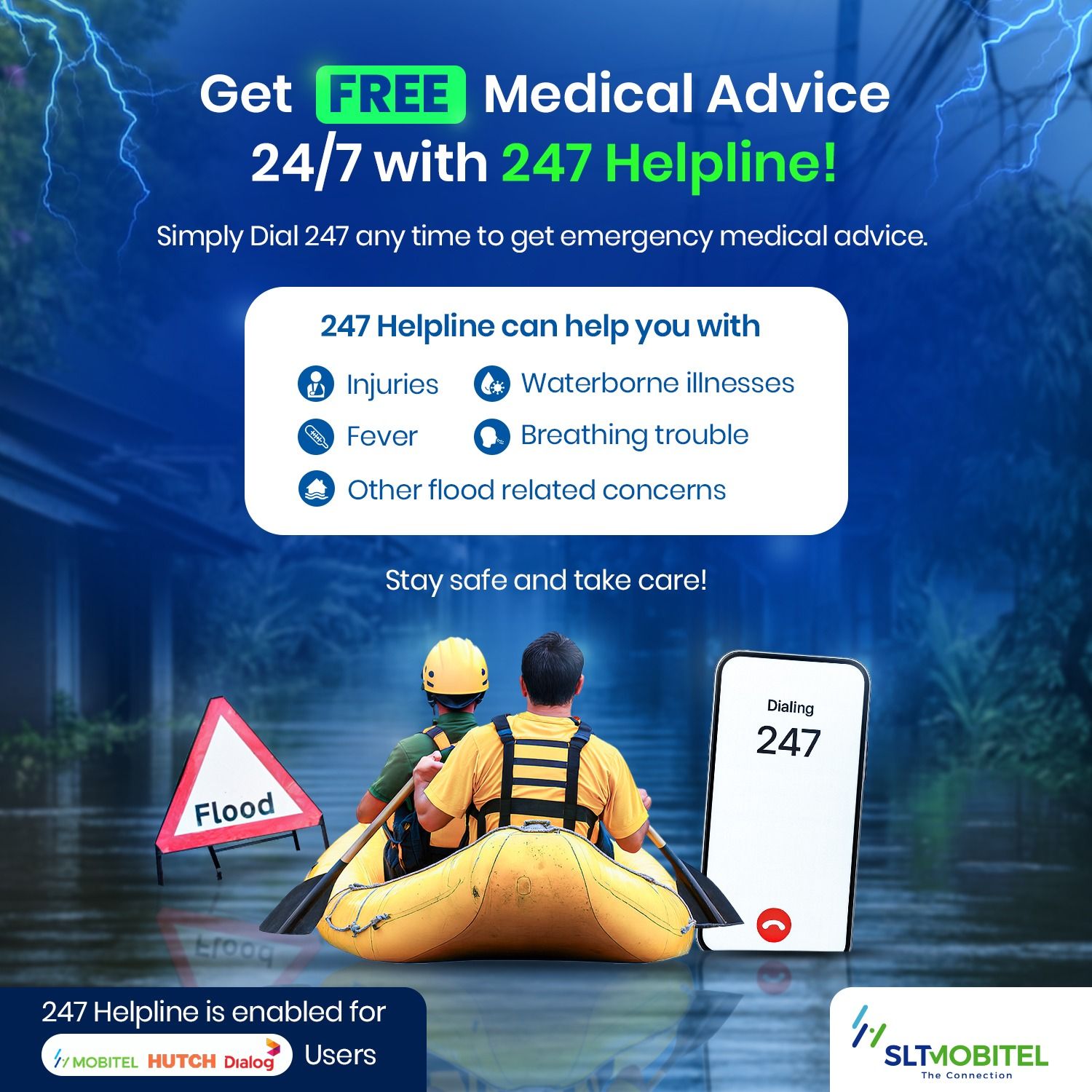 This service is designed to assist anyone experiencing health issues due to flood-related injuries, fever conditions, waterborne diseases, breathing difficulties, or any other health problems caused by the floods. By dialing 247, citizens can immediately receive the medical guidance they need. The service is accessible to all individuals in Sri Lanka, and it is available through all telephone networks in the country.
