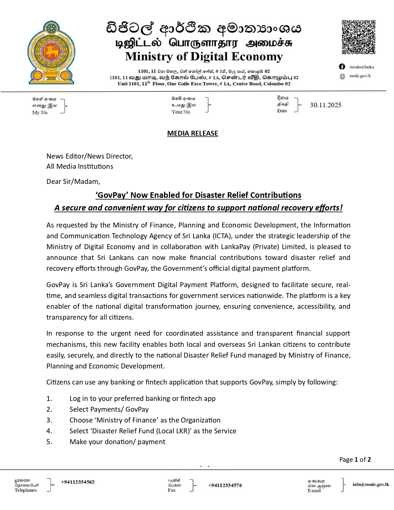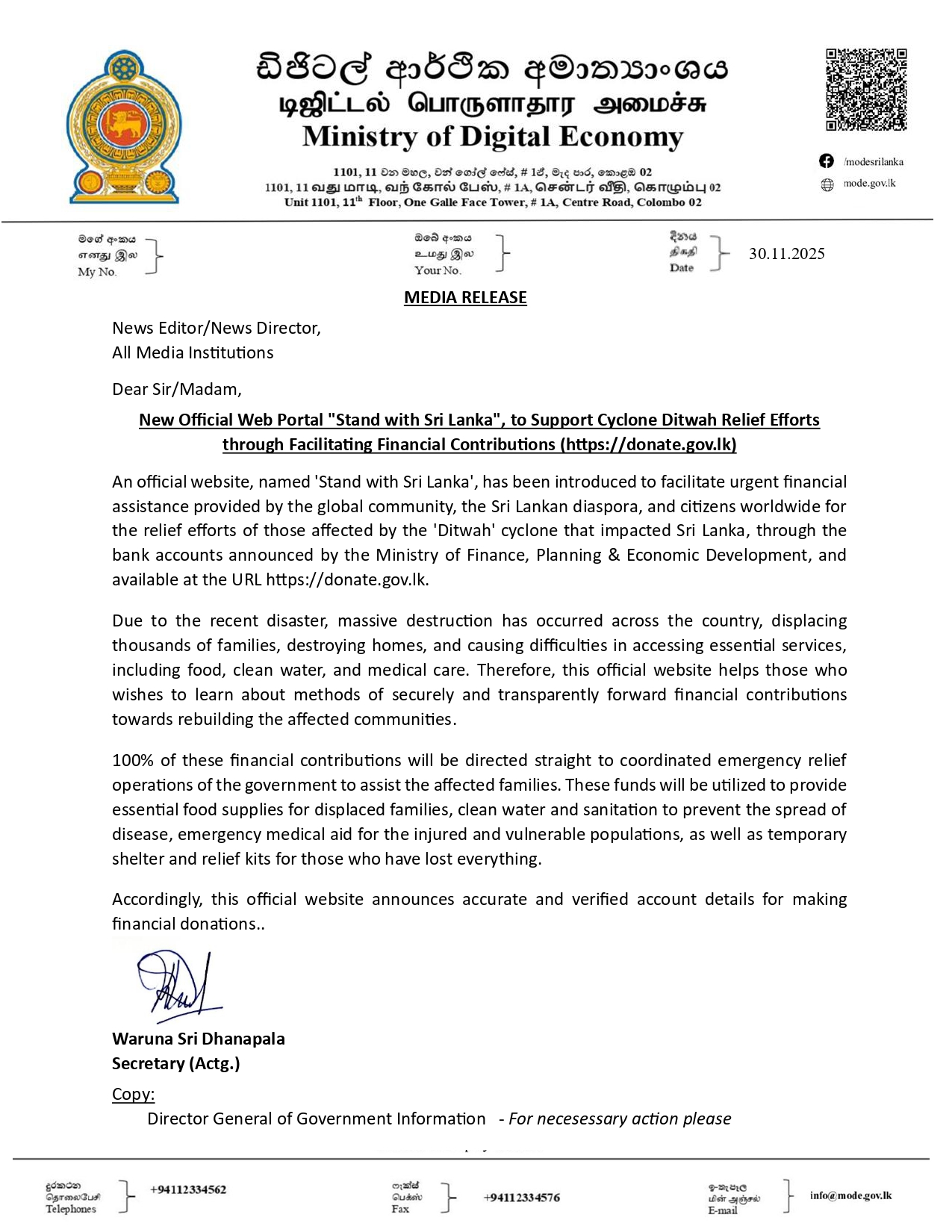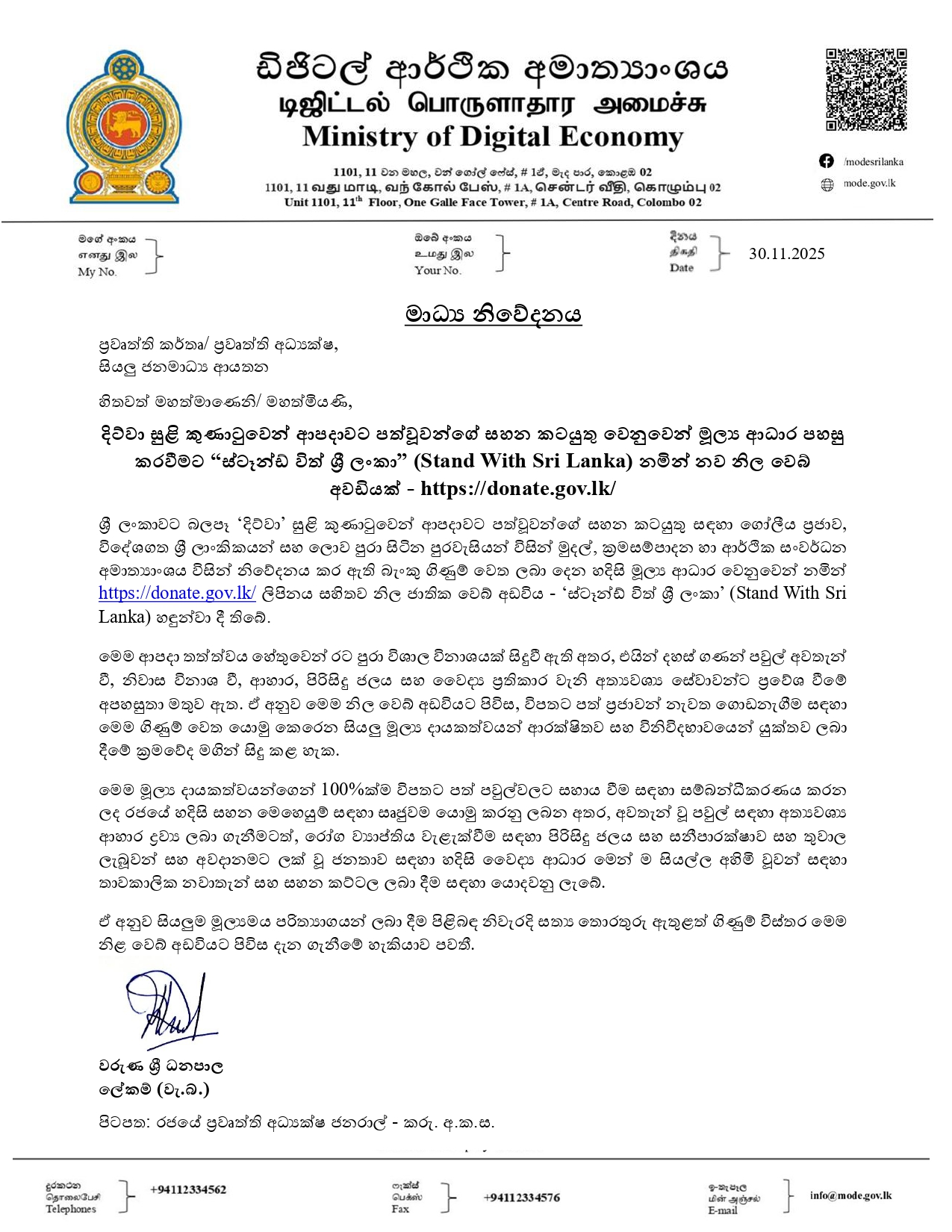 Update on Restoration of Lanka Government Cloud (LGC) Services
