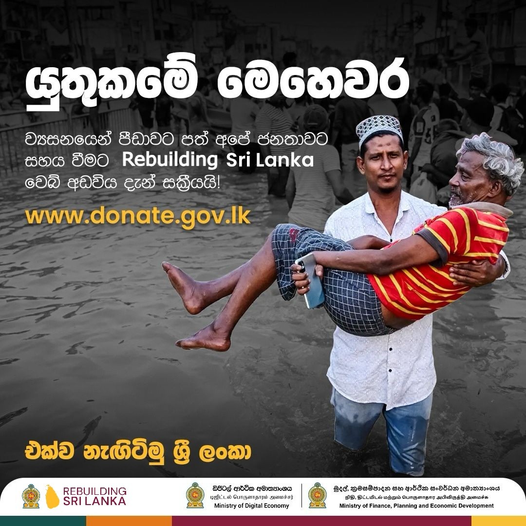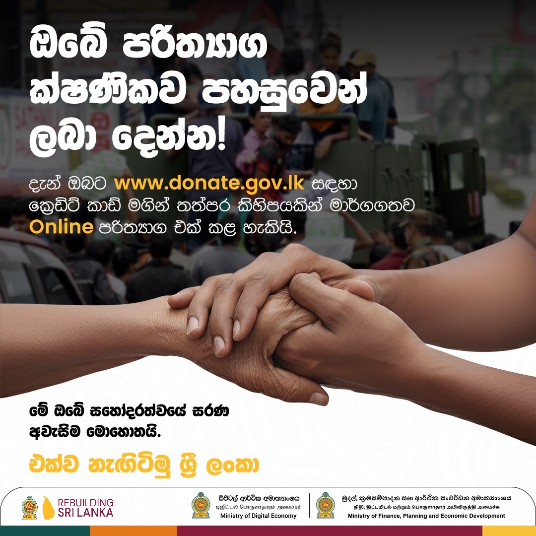 Fulfilling Our Responsibility The official ‘Rebuilding Sri Lanka’ donation platform is now live to support disaster-affected communities. Let’s rise together, Sri Lanka. www.donate.gov.lk