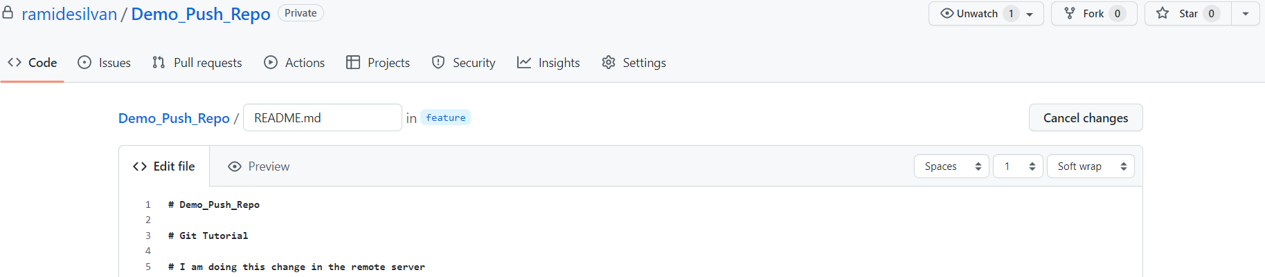 As there is also a Feature branch, you must publish the feature branch as well. Now the changes can be made to the files locally and then push the changes to the remote repository. Changes in the remote repository should also be in sync with the local repository.