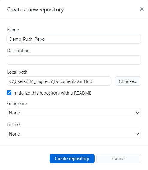 In the previous section, we learned about working with the remote repository by cloning it. Using GitHub desktop, we can also create a new local repository and push or publish the same to GitHub.