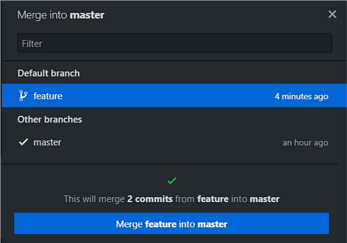Assume that there are changes in the feature branch in the local repository. We can merge the changes to the master branch. Post this we should push the changes of the master and feature branch to GitHub.
