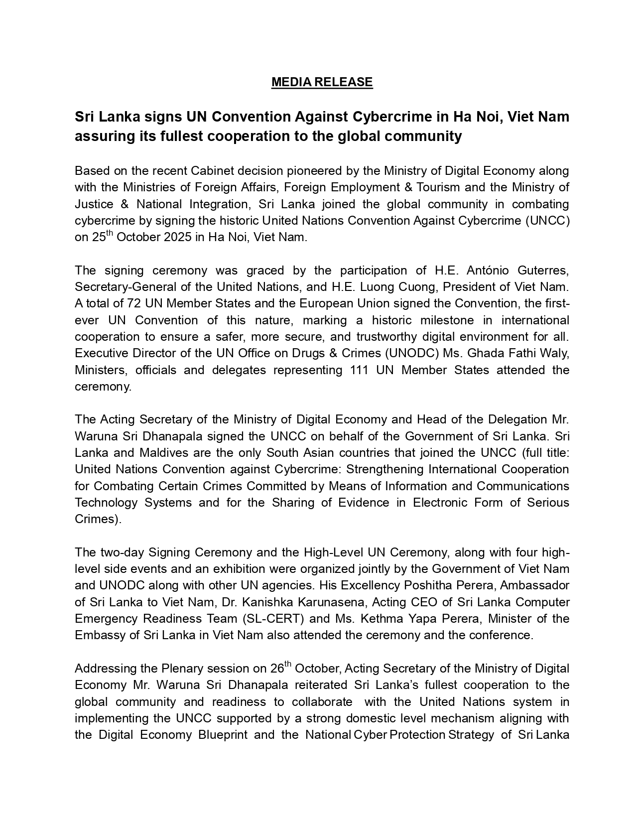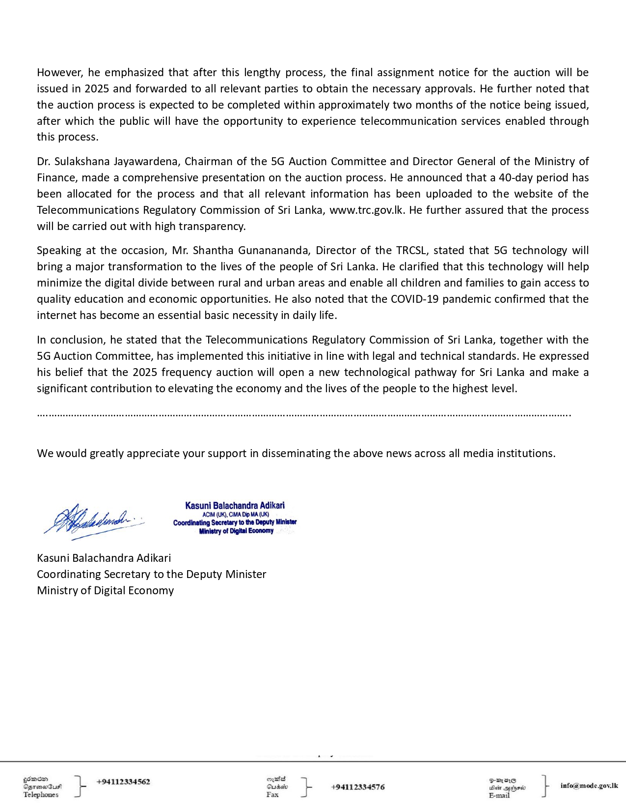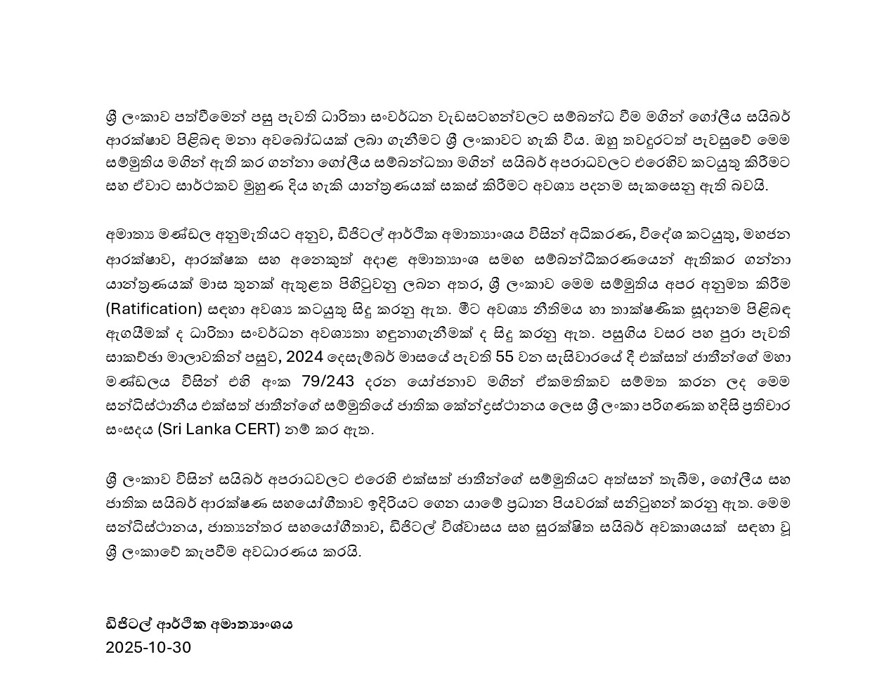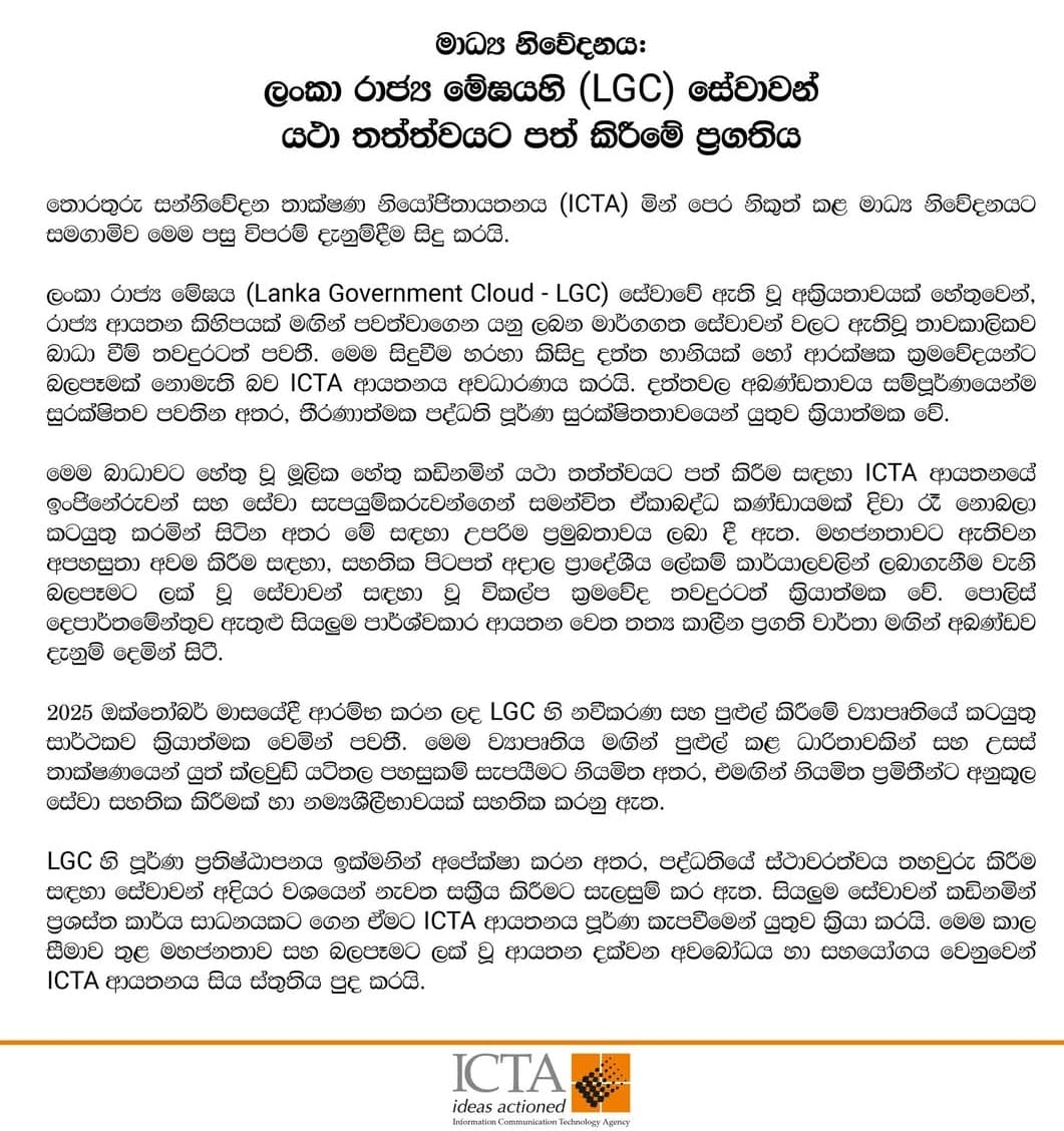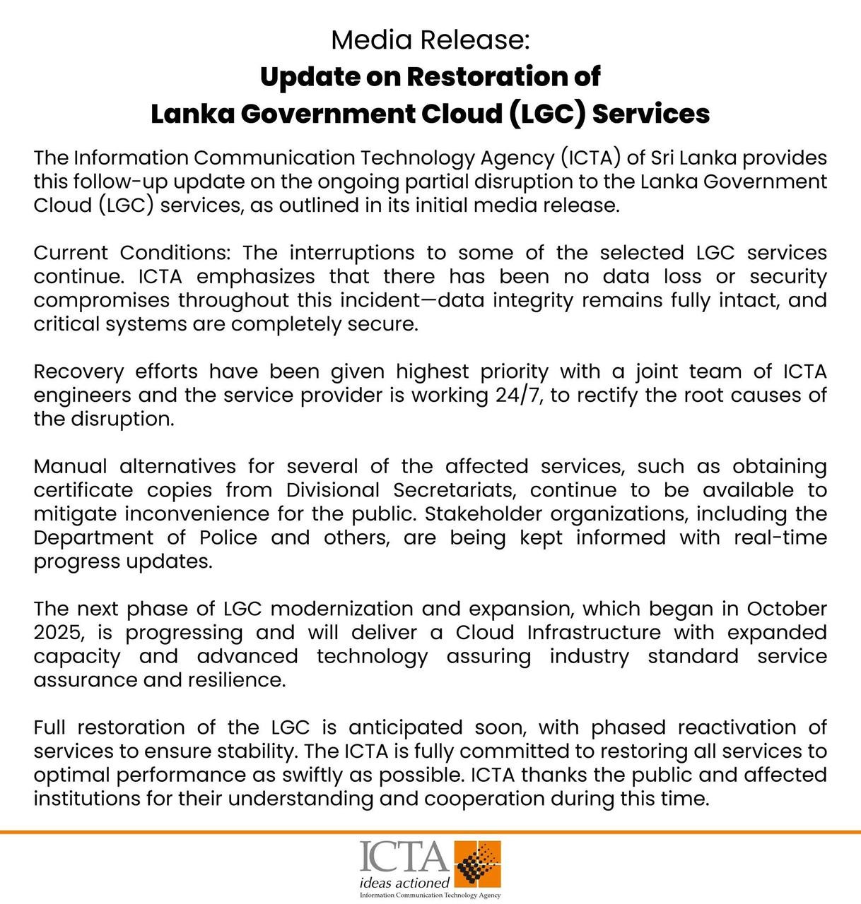 Update on Restoration of Lanka Government Cloud (LGC) Services