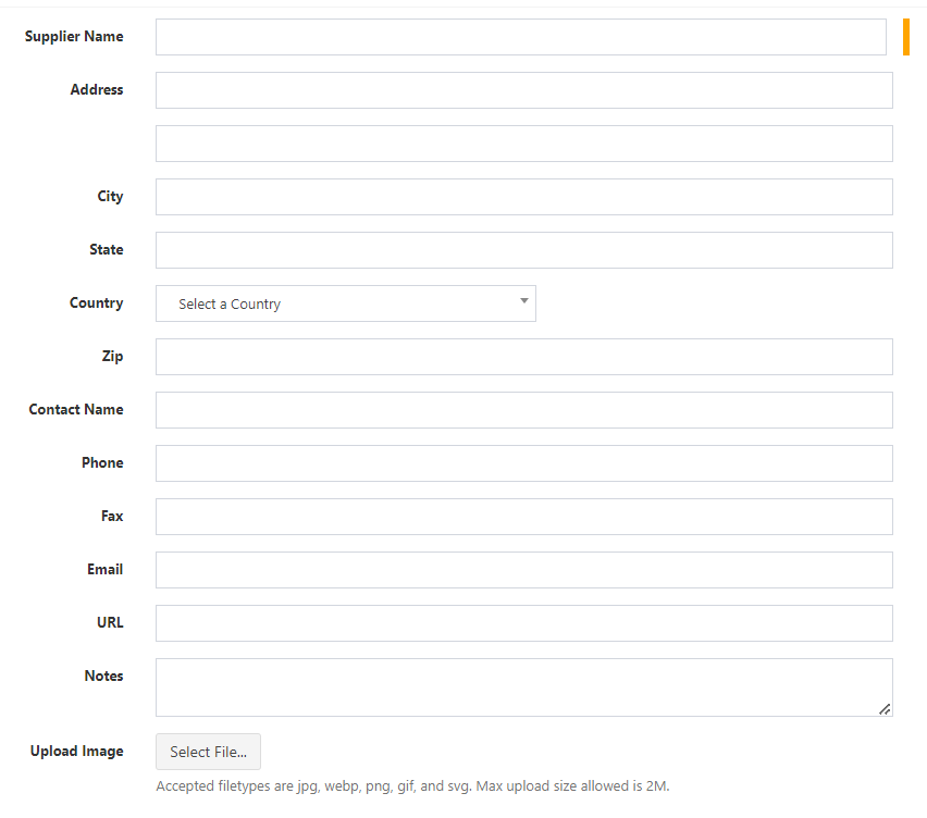 Select “Suppliers” from the settings and then select “Create New” to add a new supplier to the system by filling in their details.